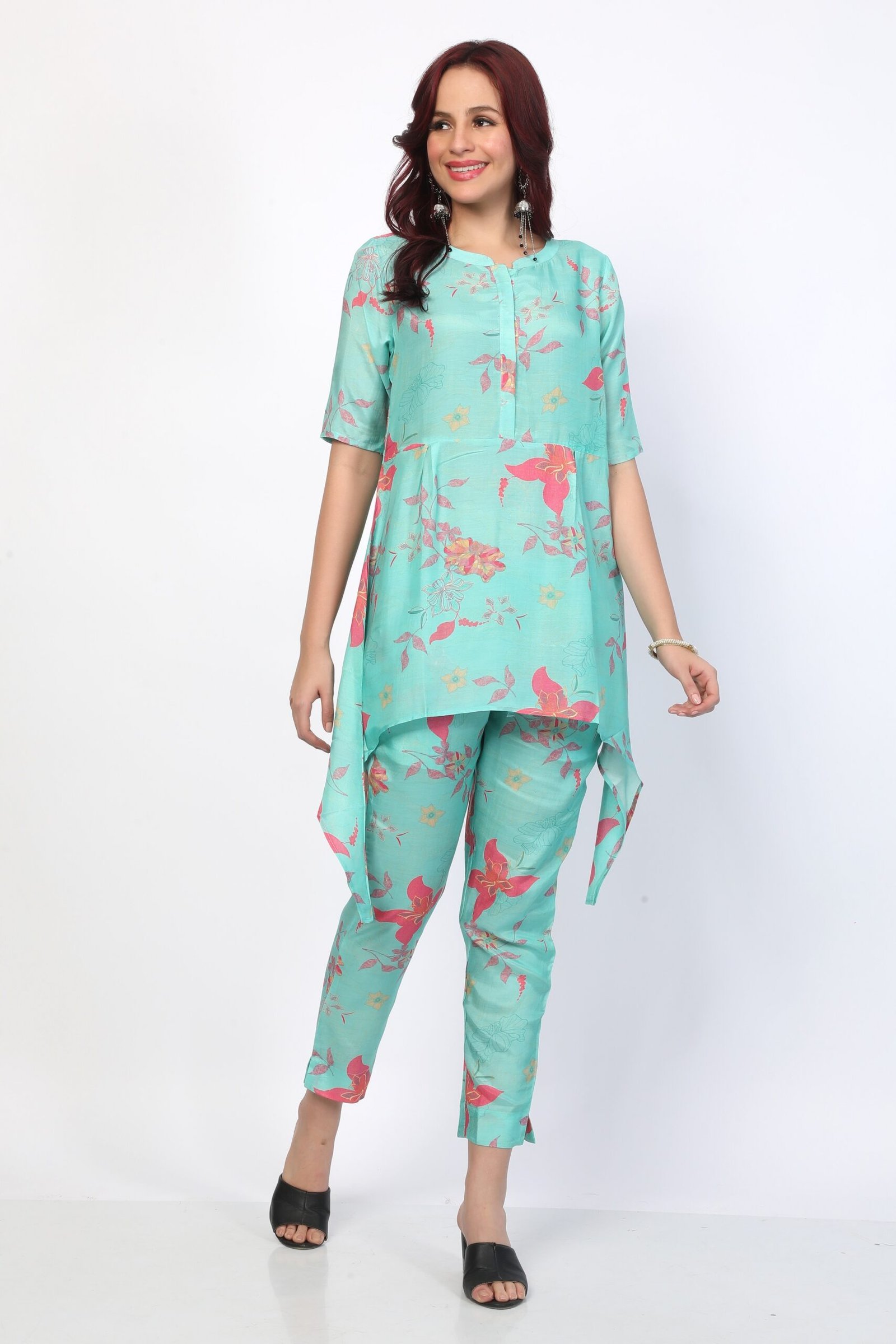 Set Includes: Asymmetric Tunic & Matching Pants (2 Pieces)