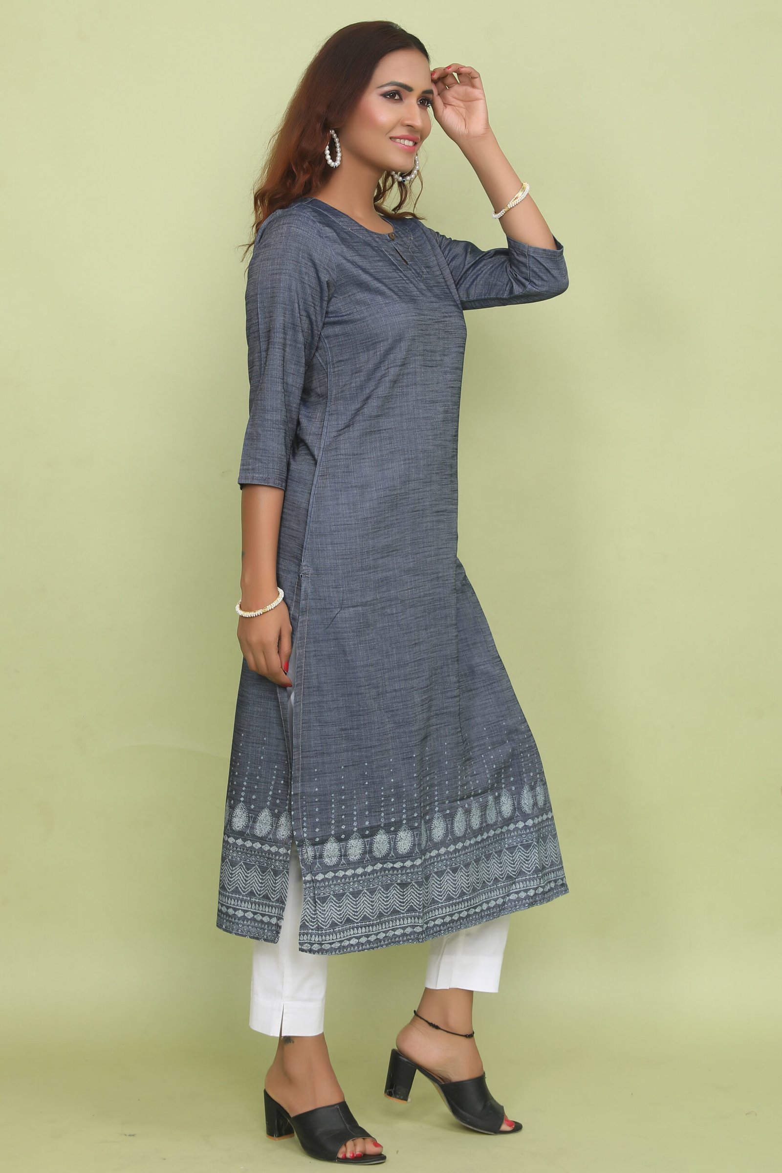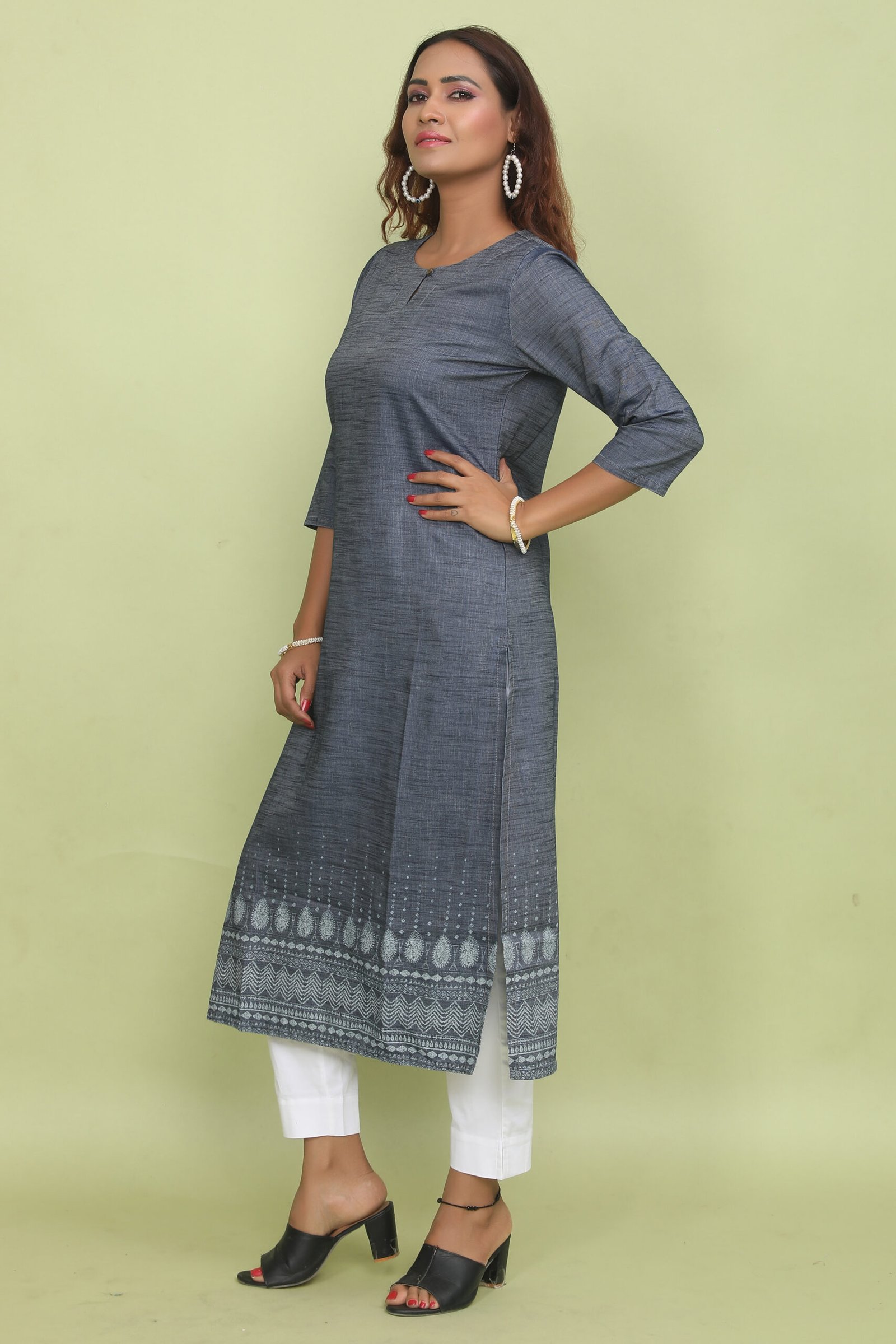 Pattern: Solid Base with Intricate White Printed Border at Hem