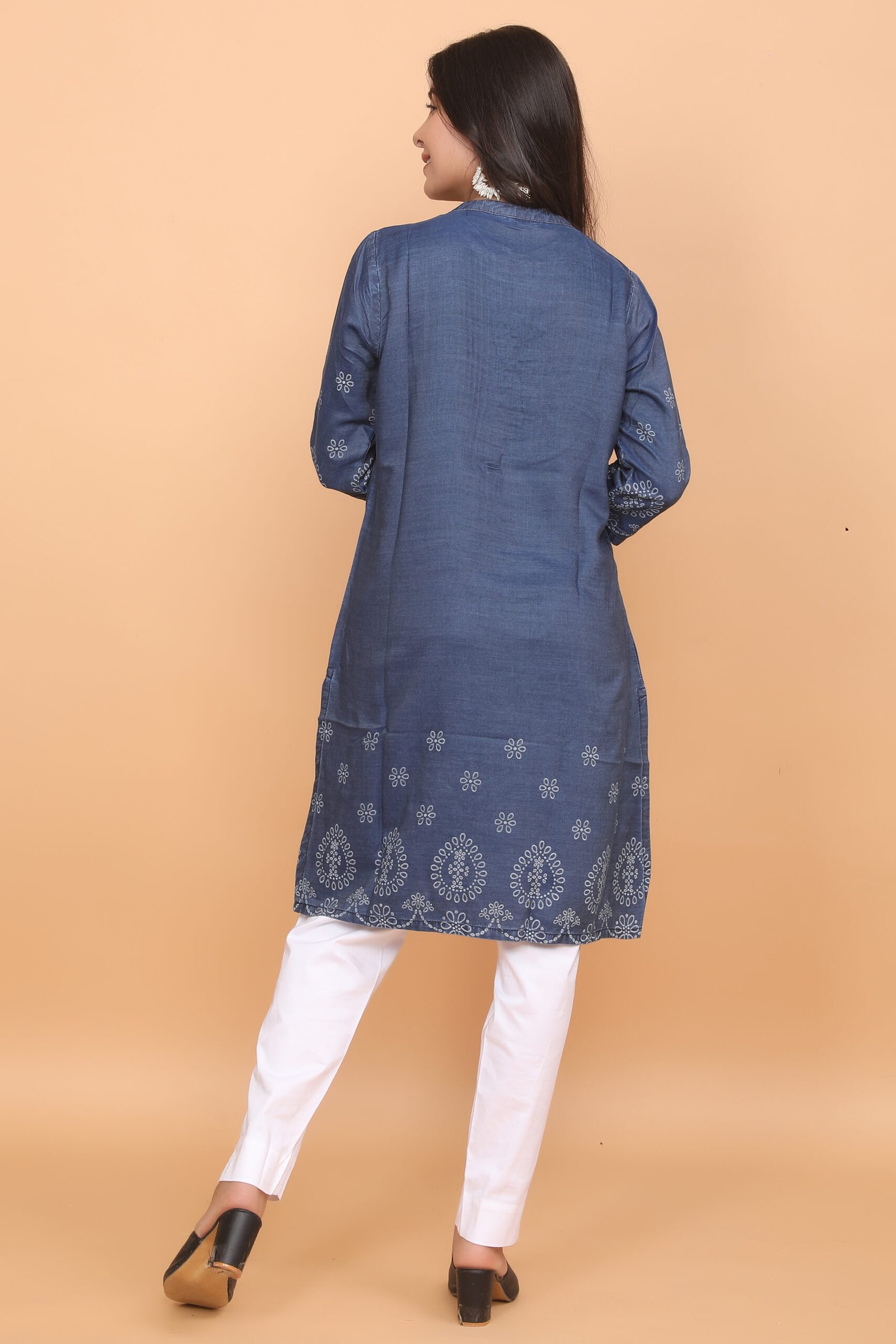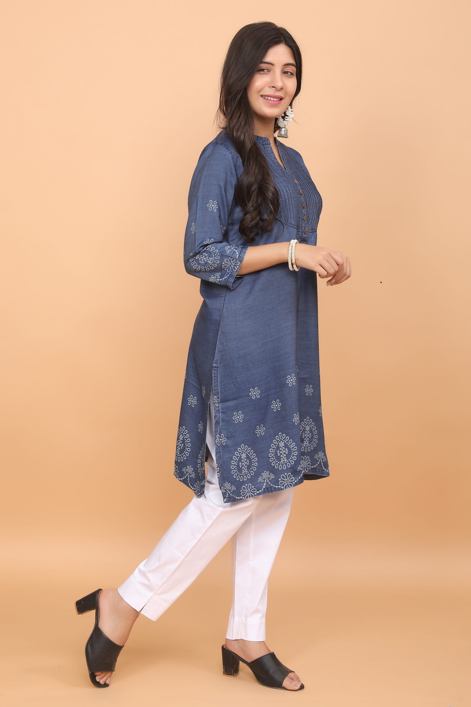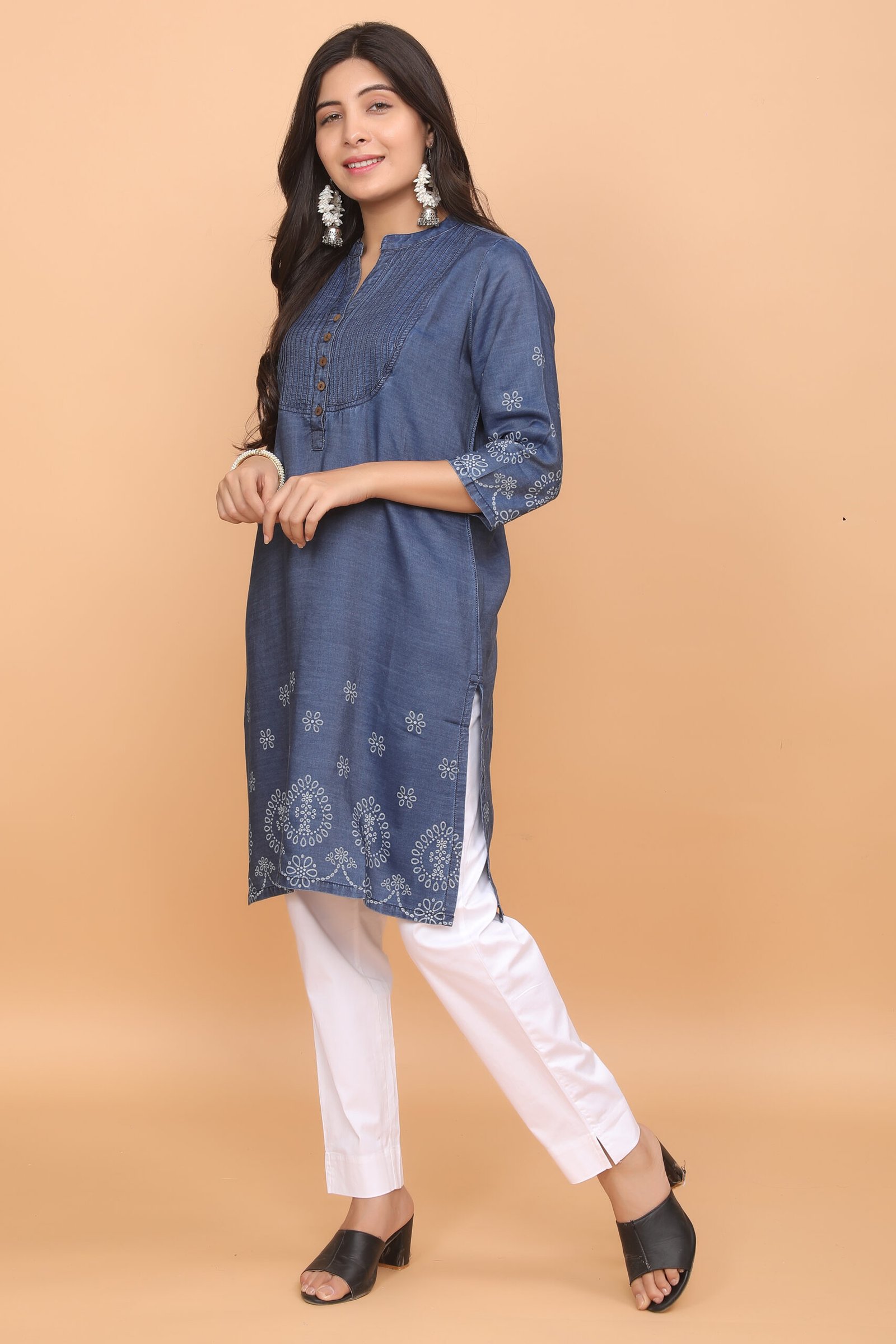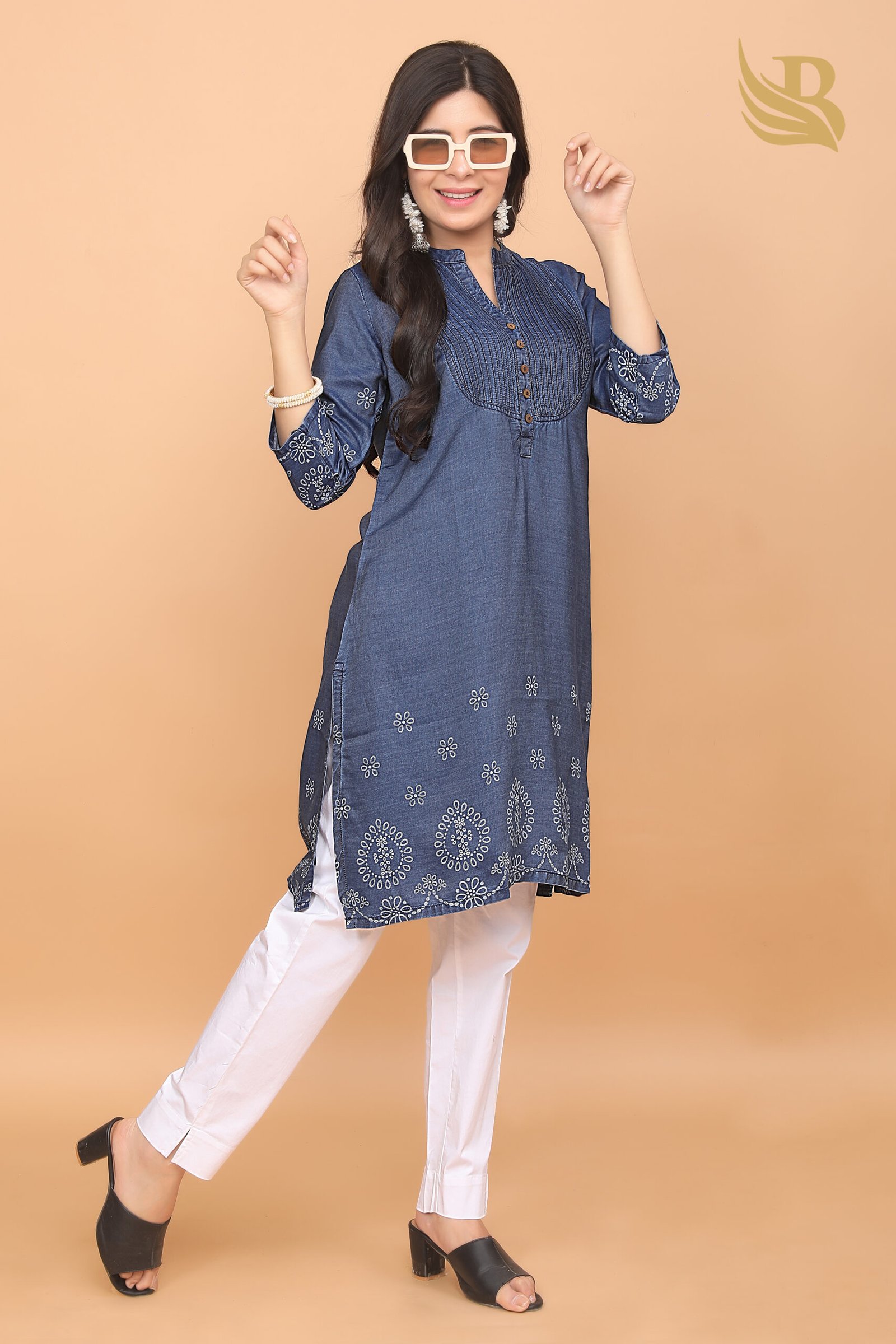 USP: Soft Denim Fabric with Pin-Tuck Texturing