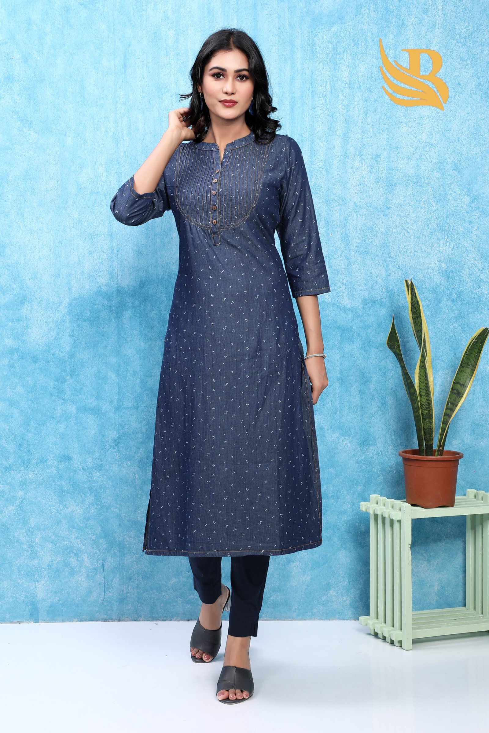 • USP: Soft Denim Fabric with Intricate Pin-Tuck Detailing