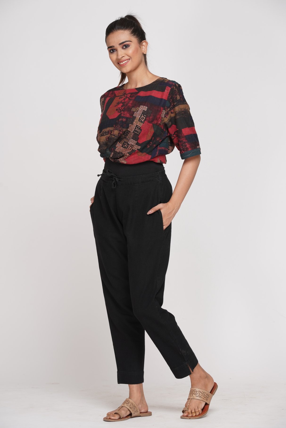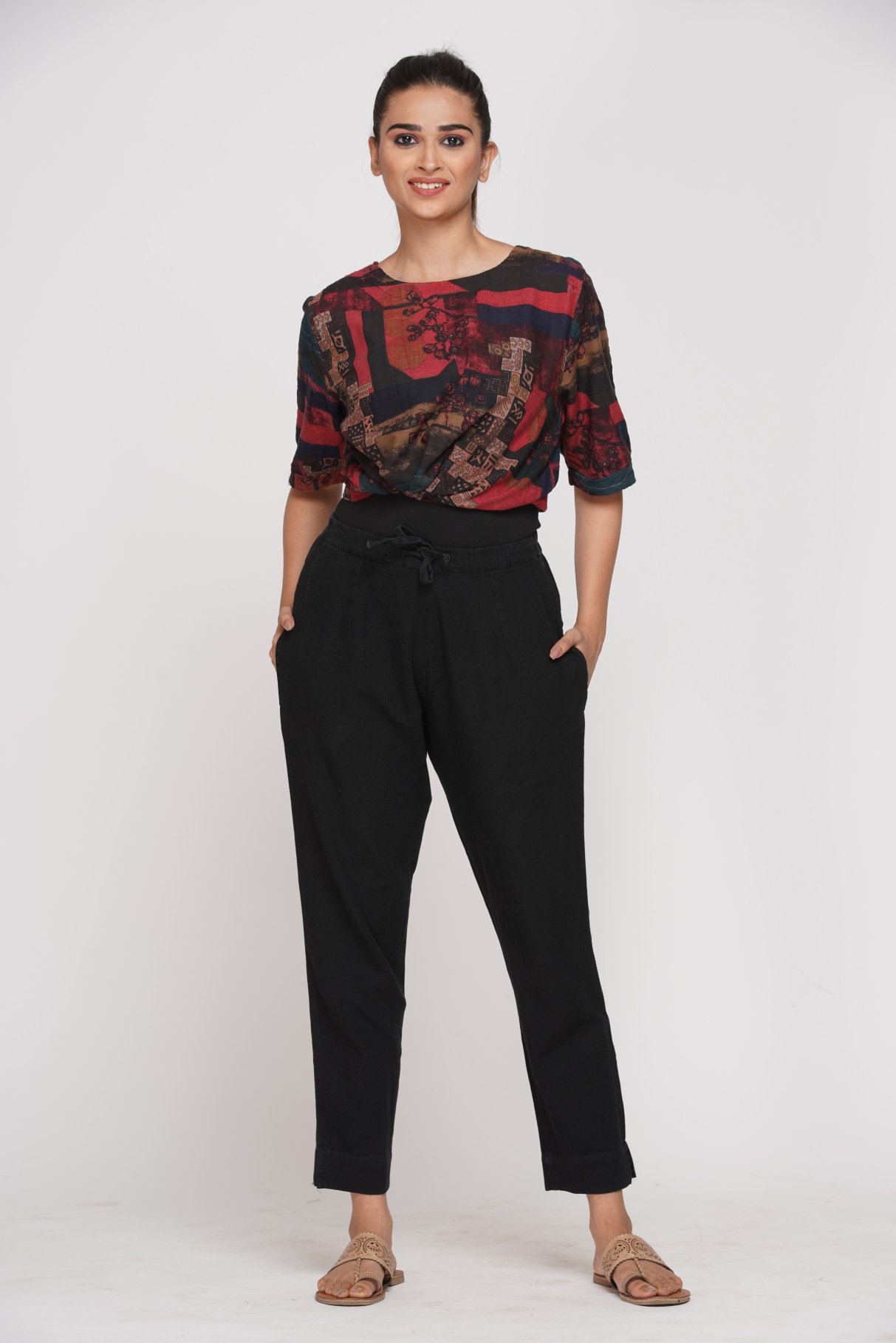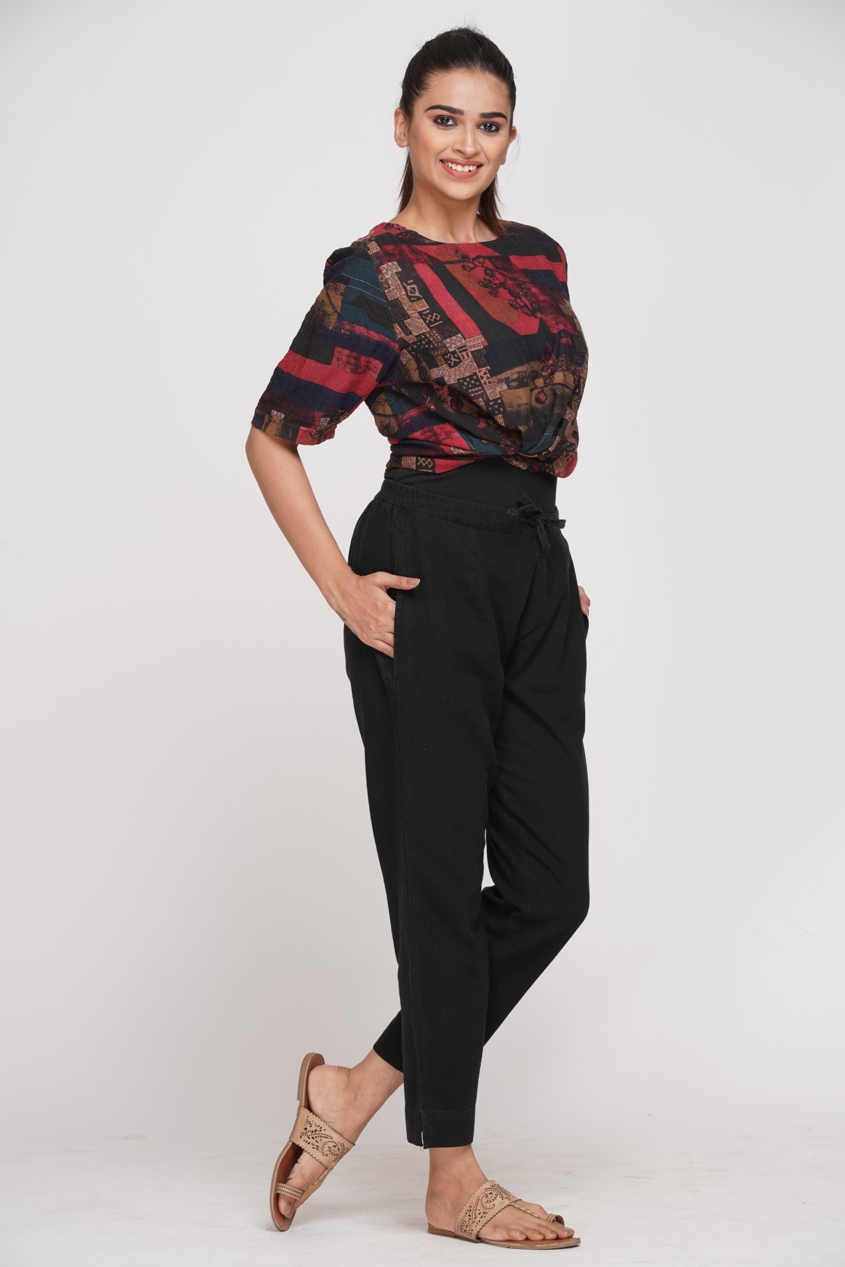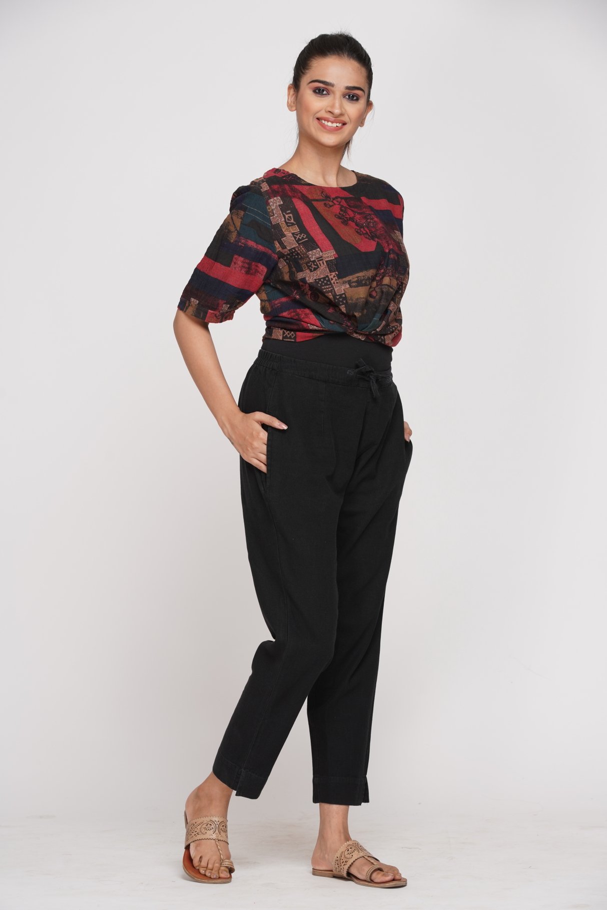 Be the first to review “Black Tan Pre Washed Cotton Stretch Darted Narrow Pant-Half Elastic”