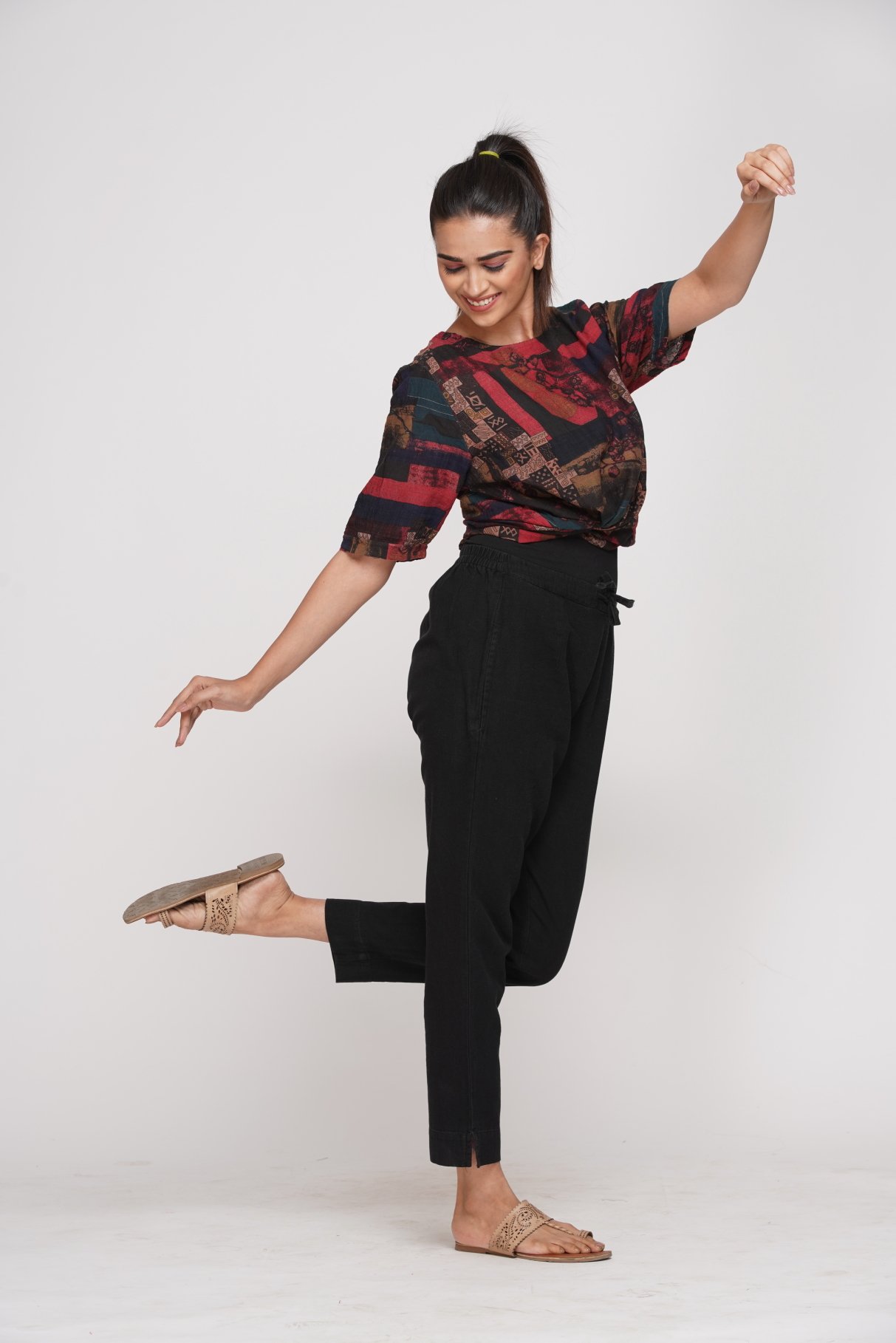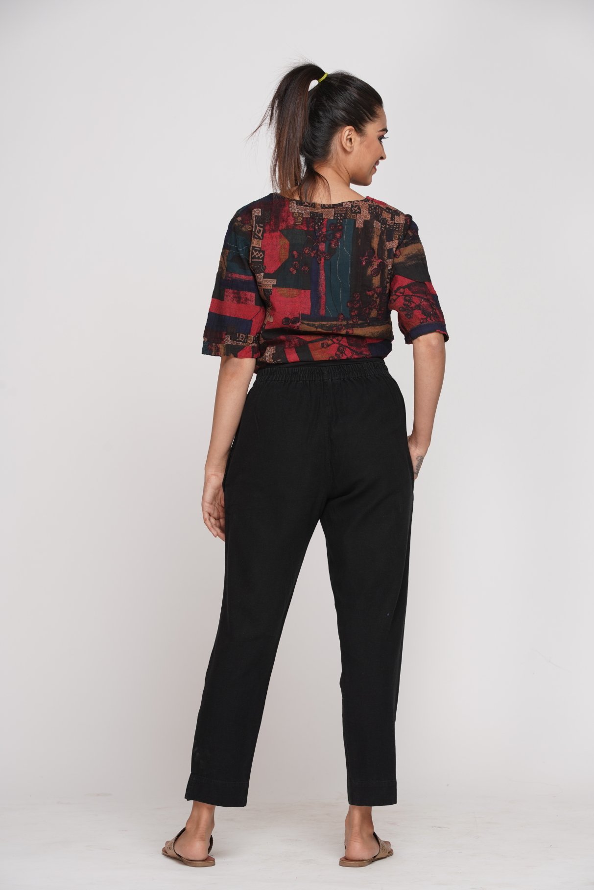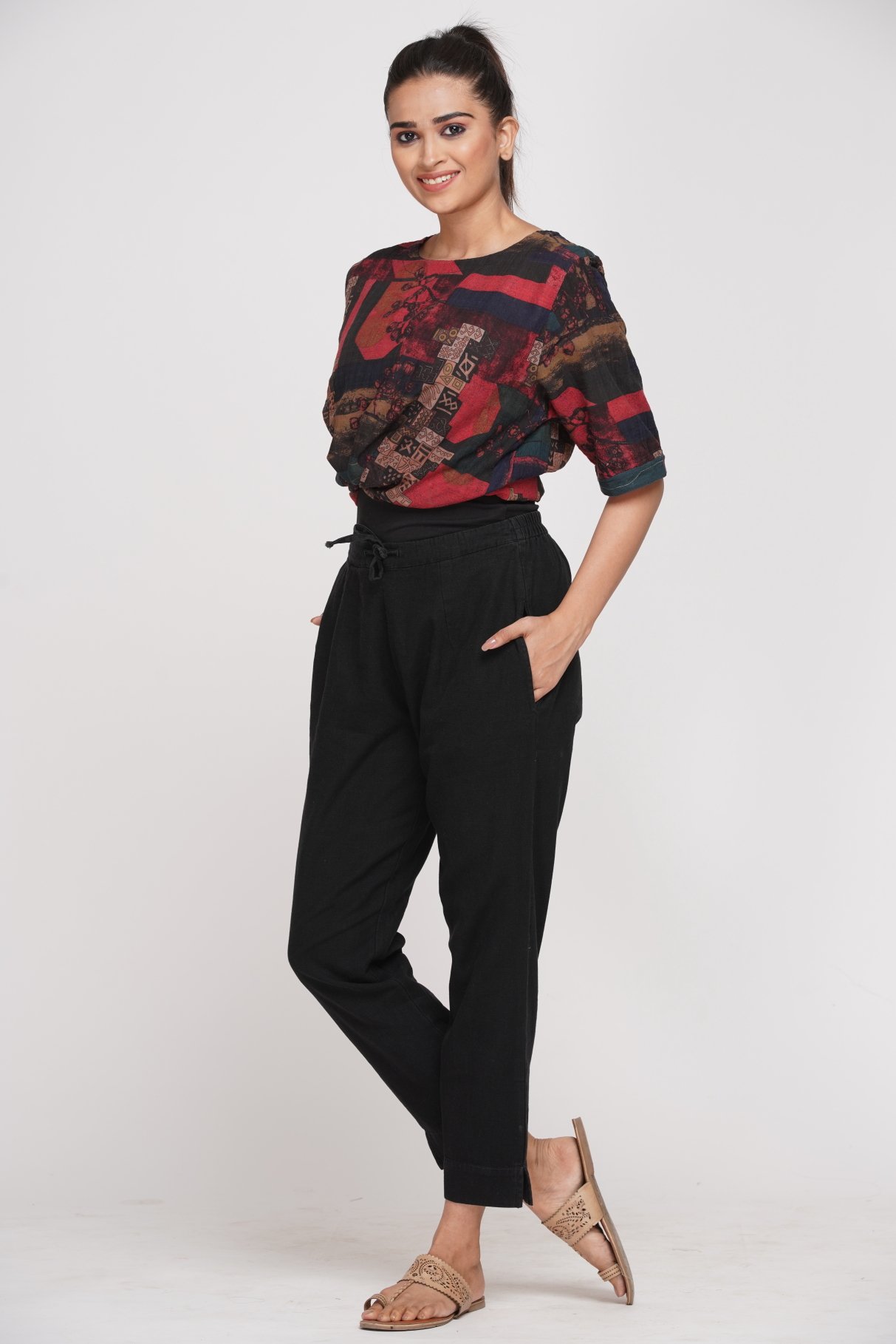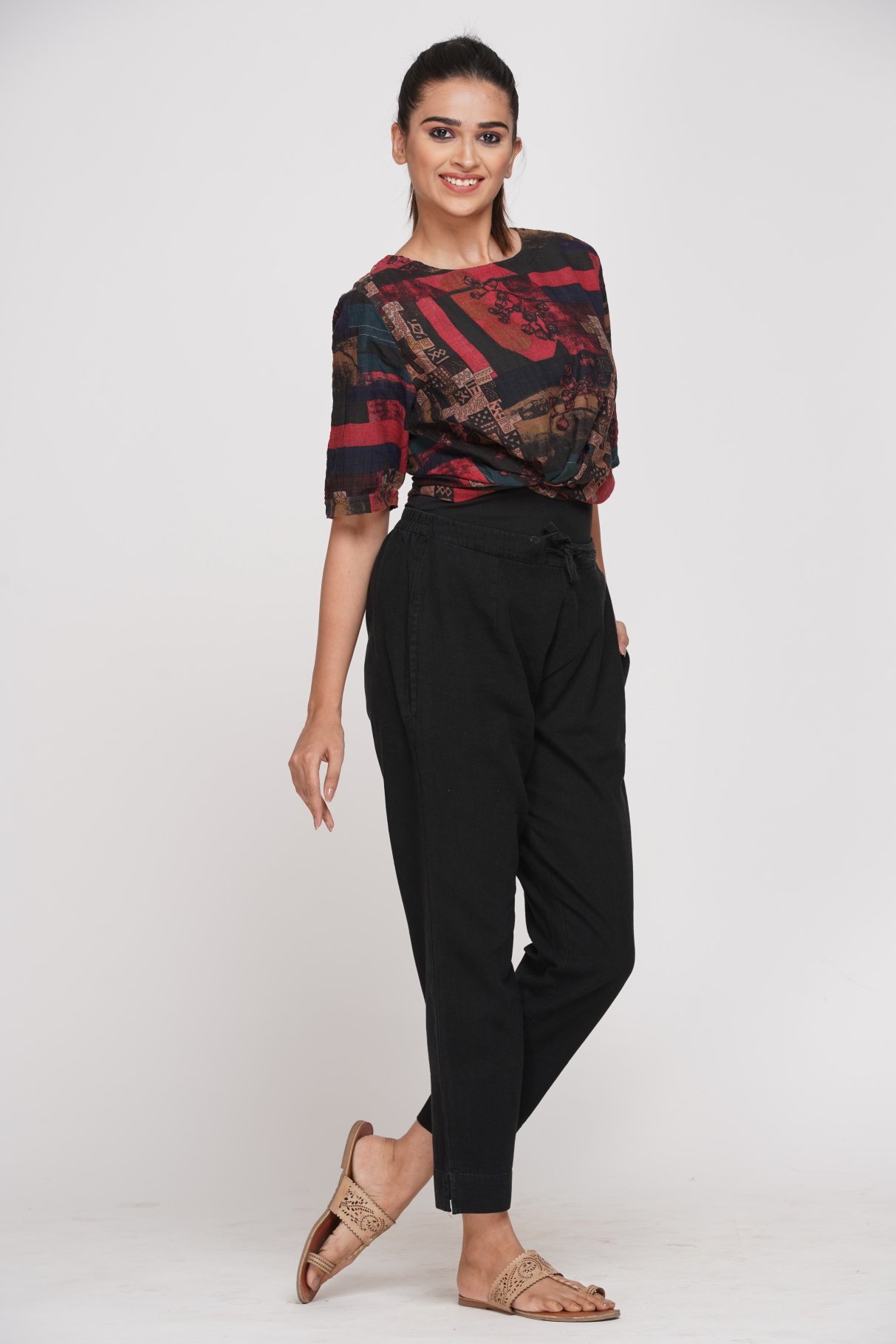 Be the first to review “Black Tan Pre Washed Cotton Stretch Darted Narrow Pant-Half Elastic”