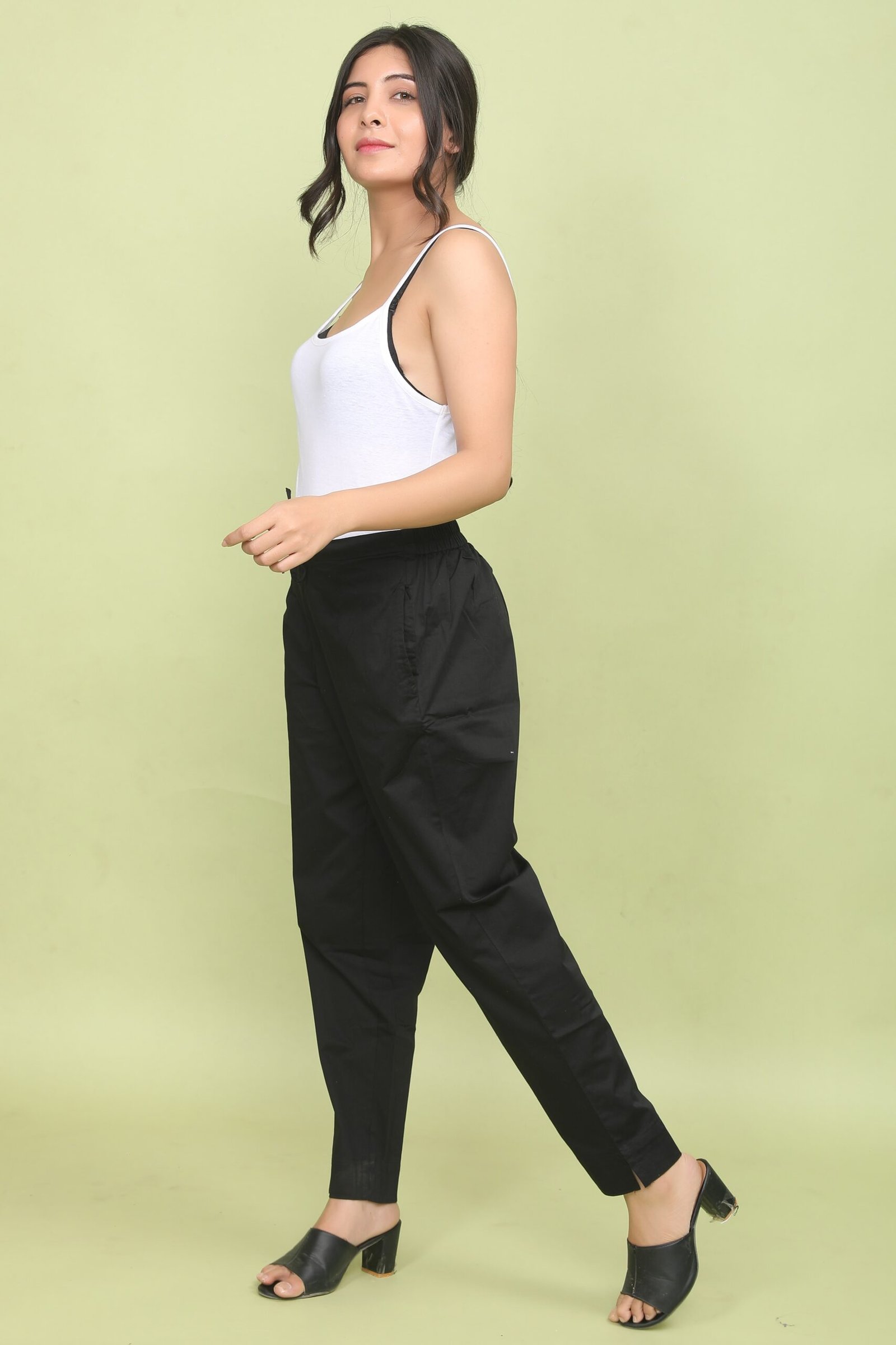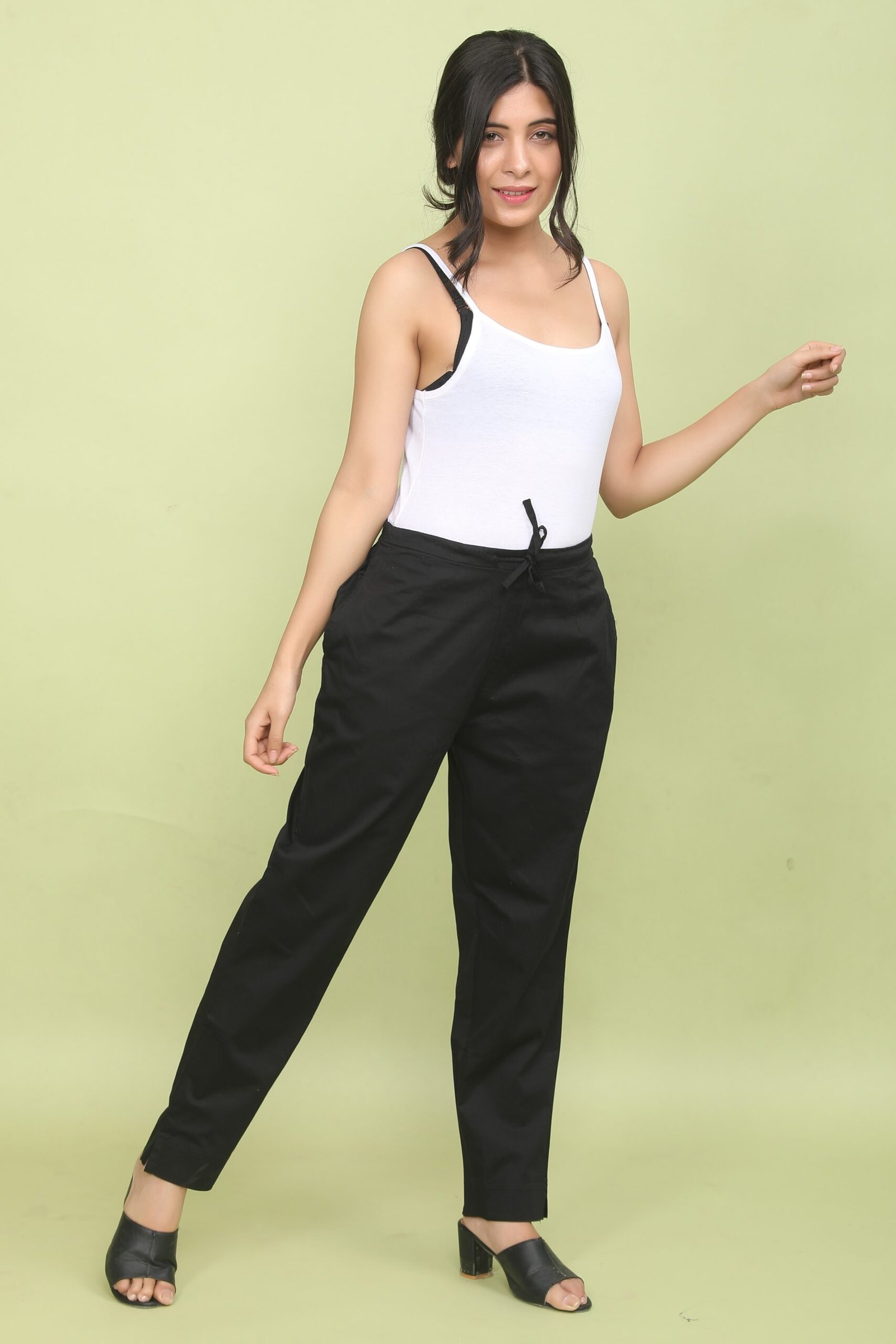 Be the first to review “Black Pre Washed Cotton Stretch Darted Narrow Pant-Half Elastic”