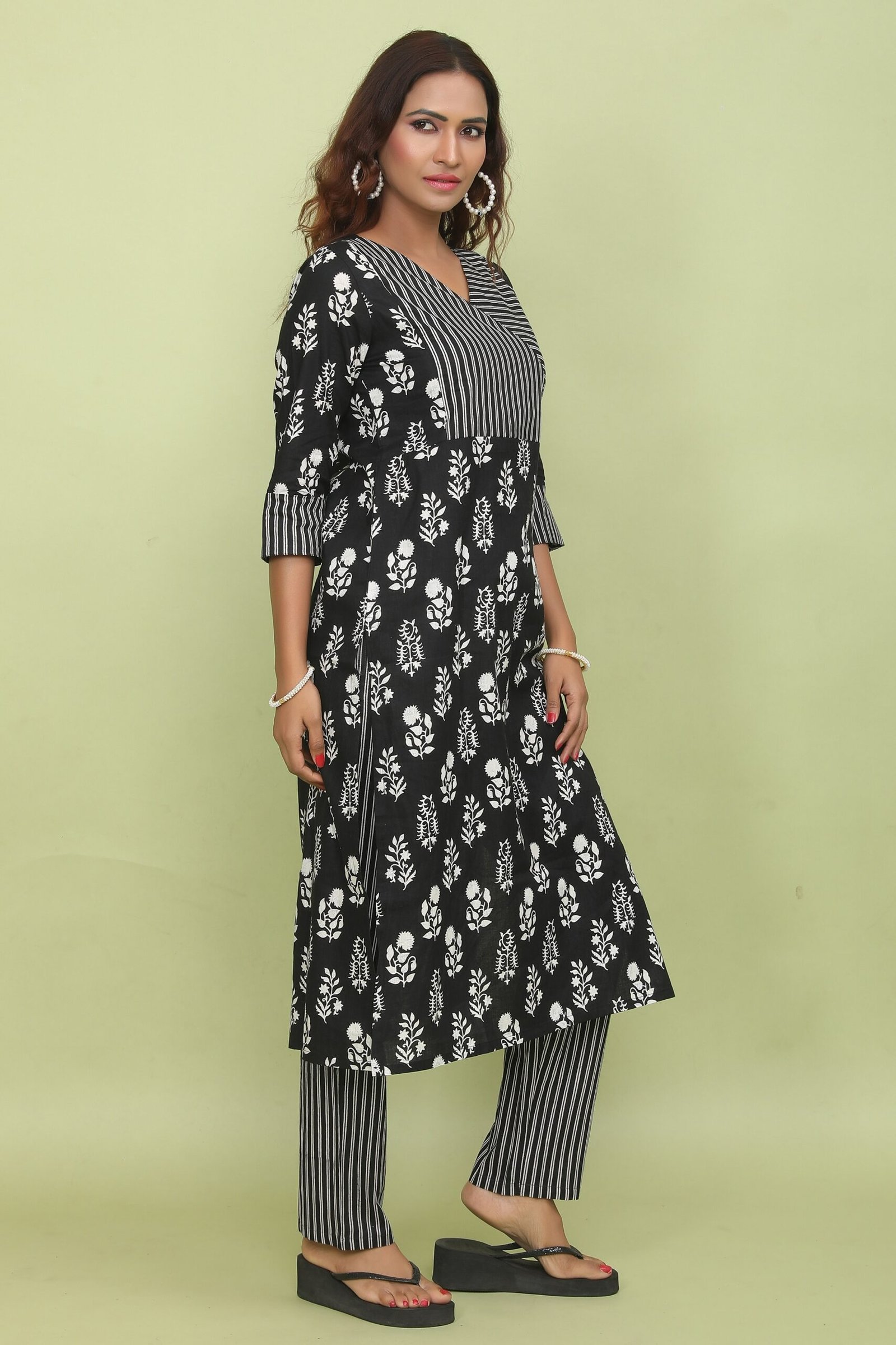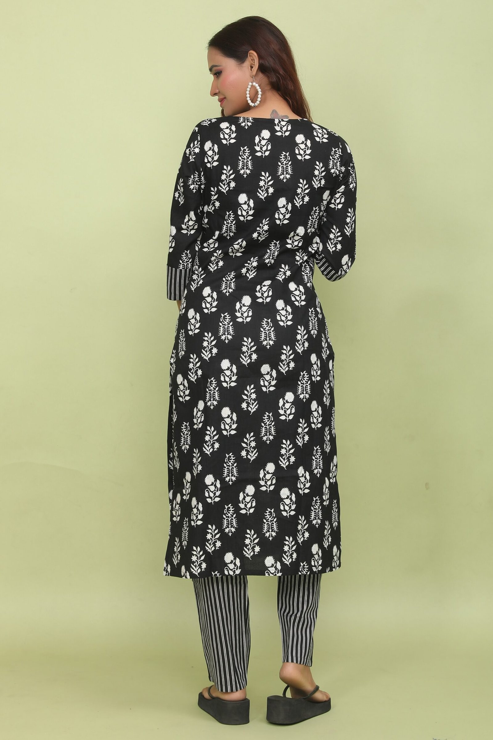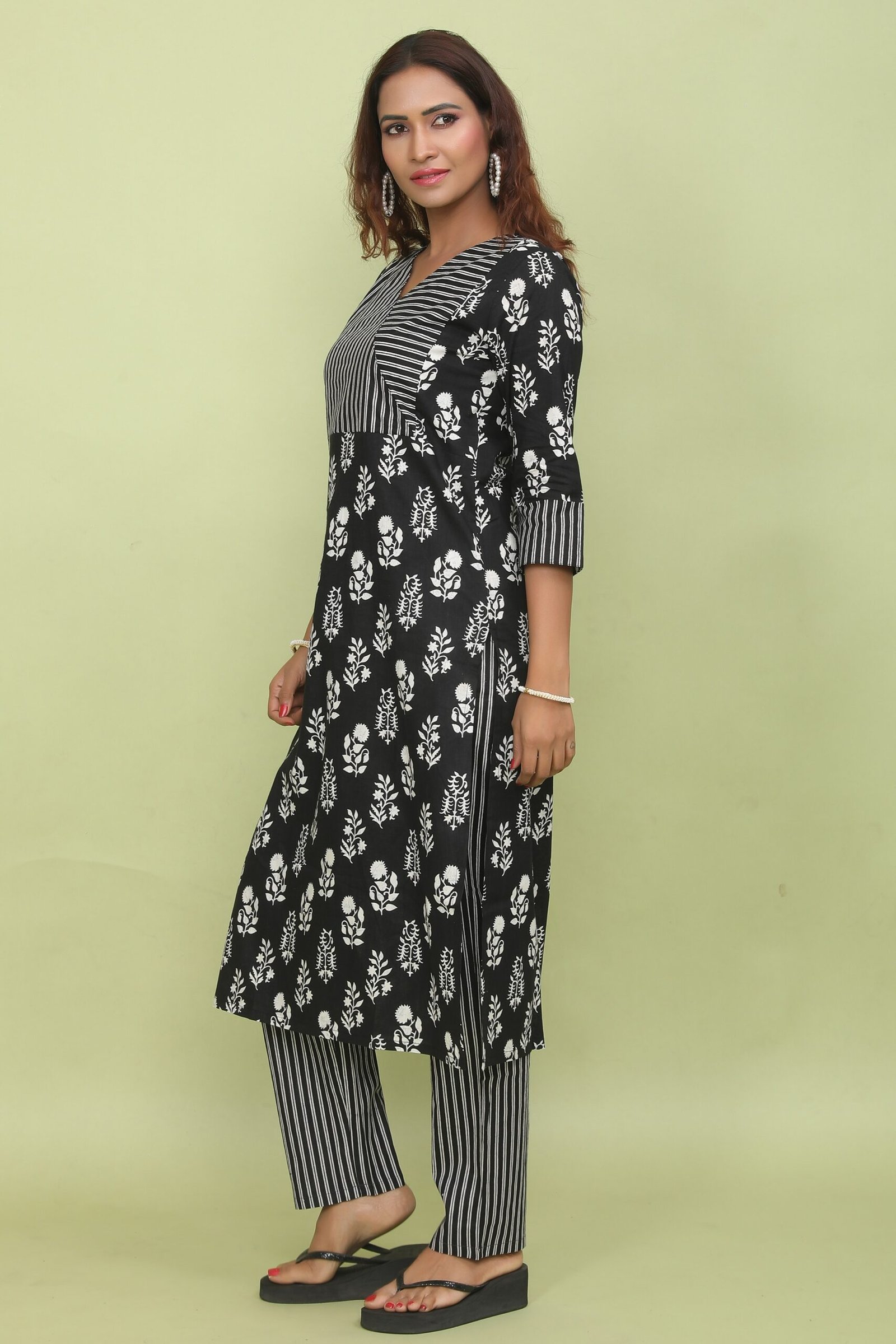 Sleeves: 3/4th Sleeves with Striped Cuffs