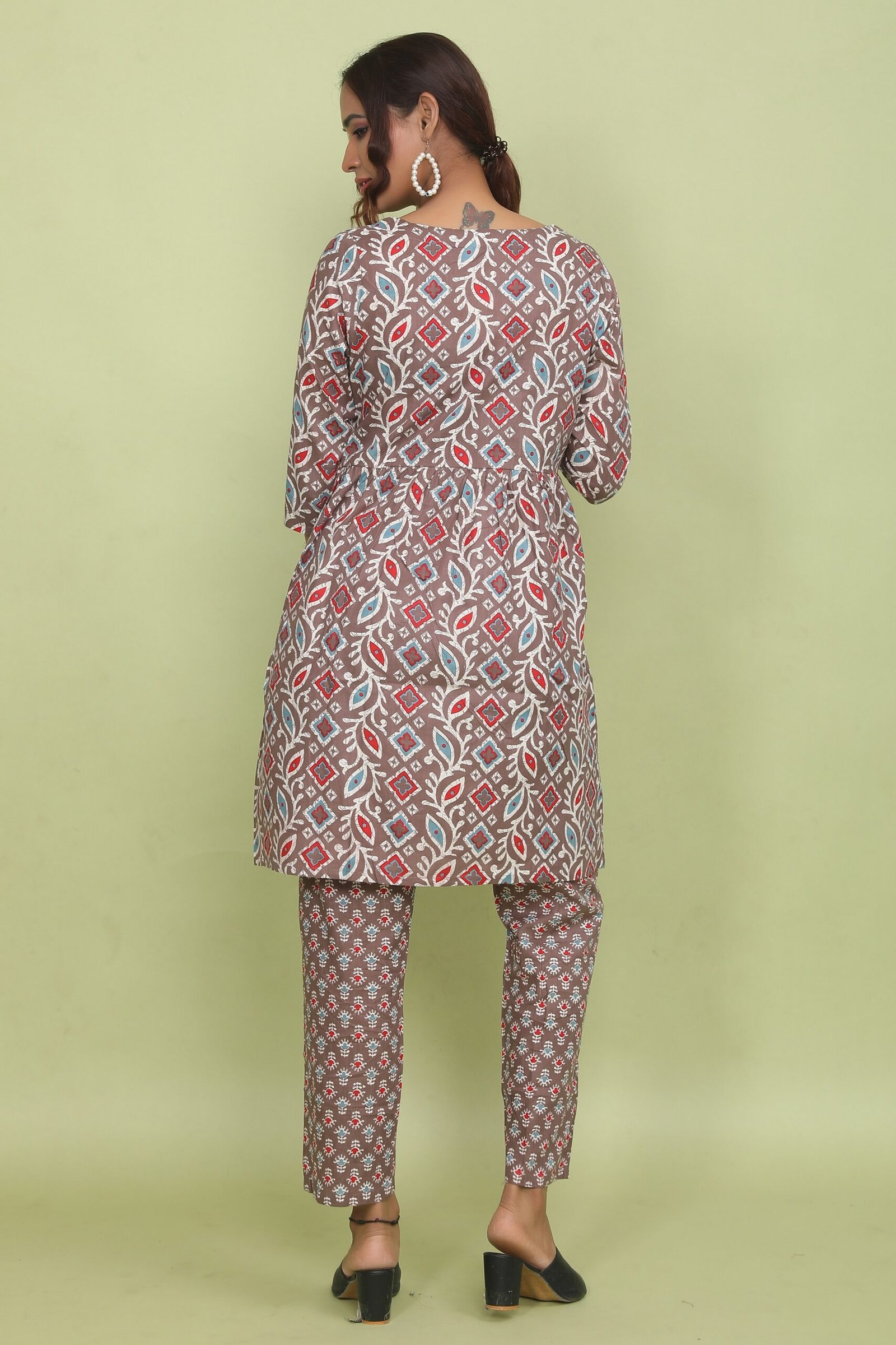 Be the first to review “Chocolate Brown Mixed Print Short Anarkali & Pant Set”