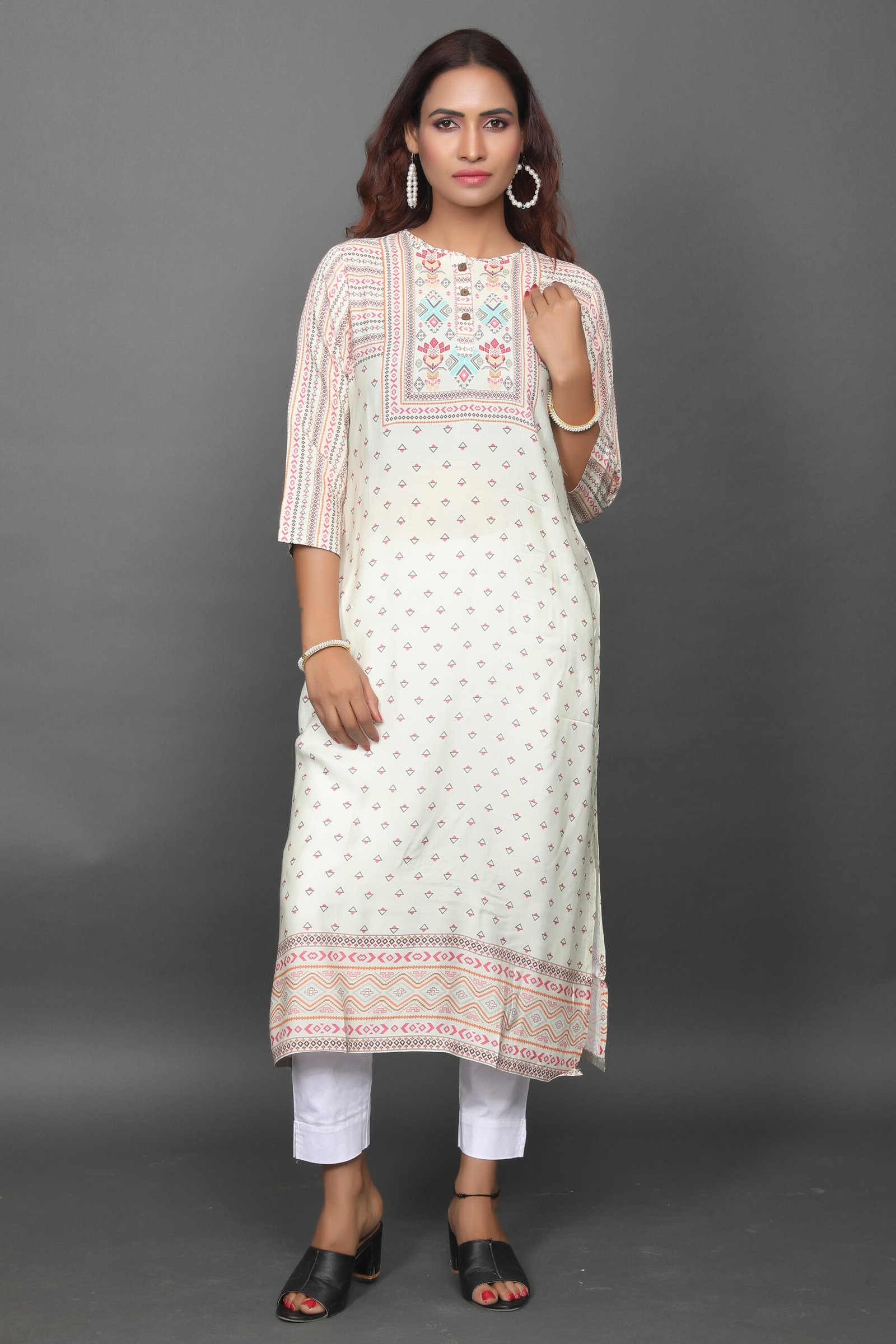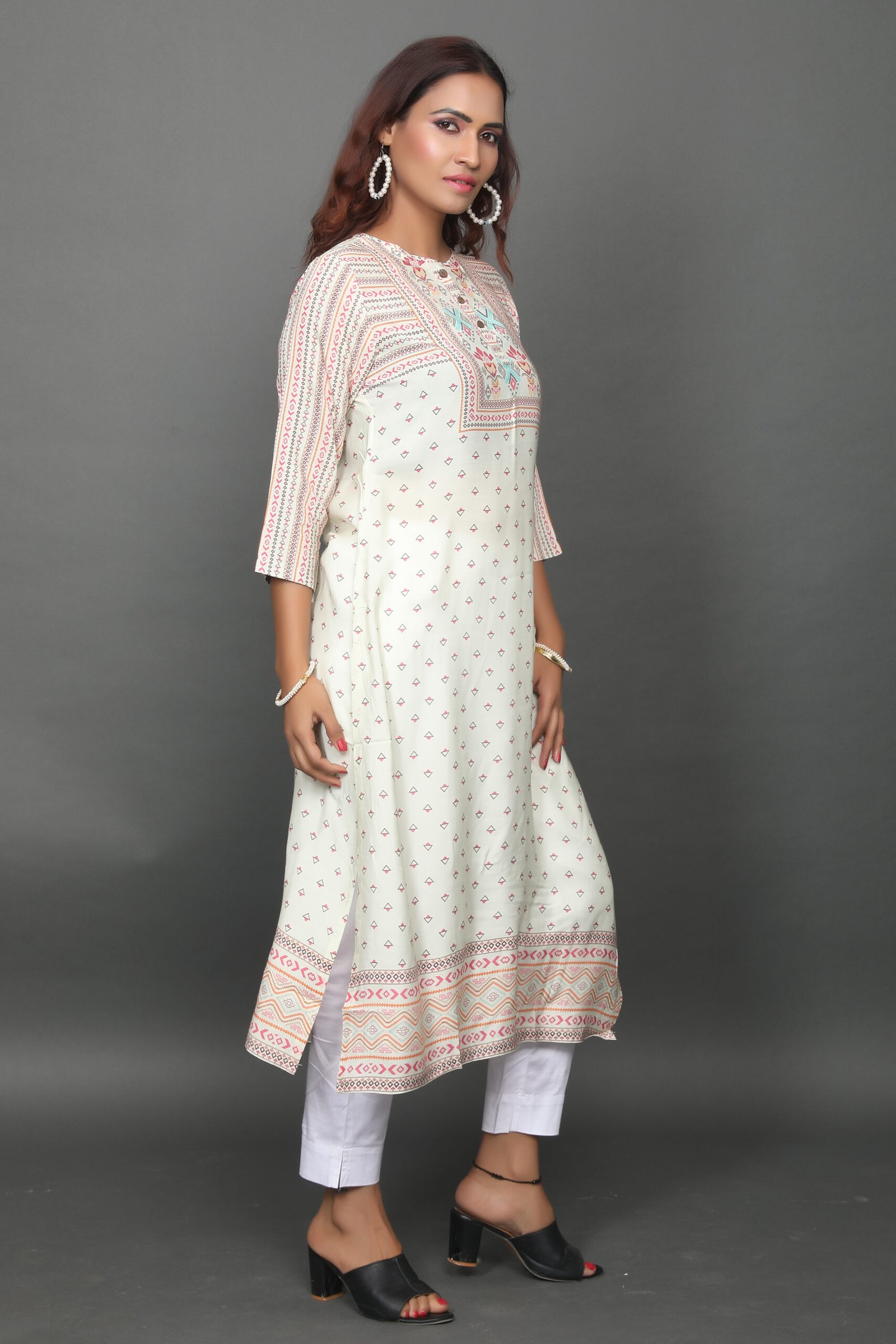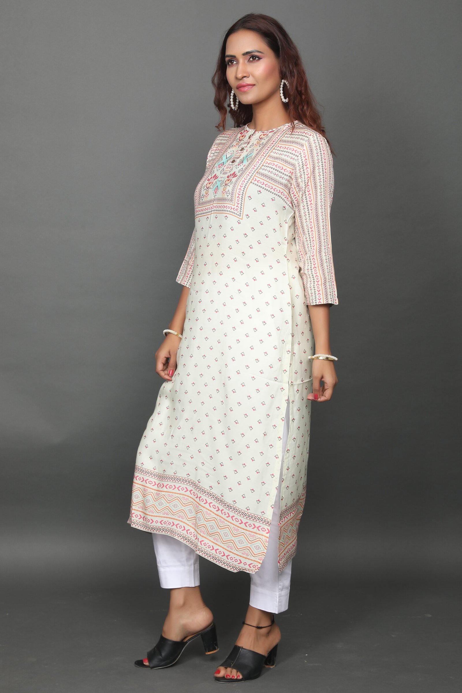 Sleeves: 3/4th Sleeves with Printed Border Cuffs