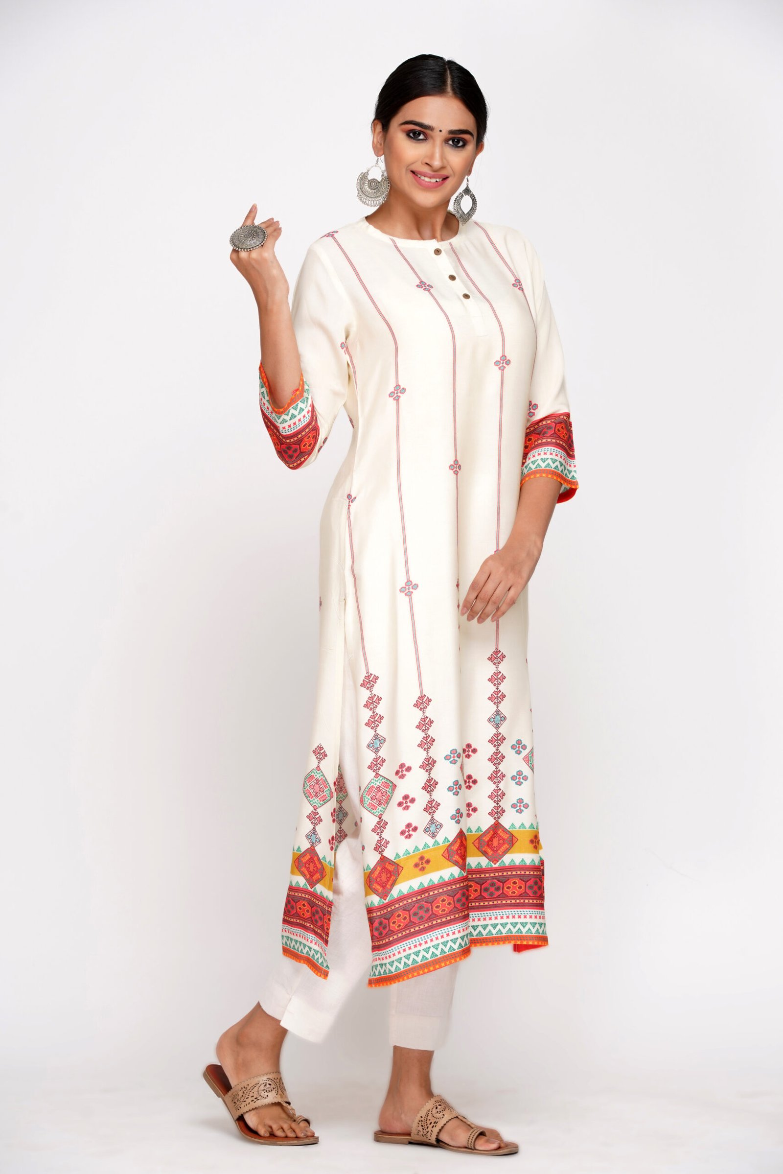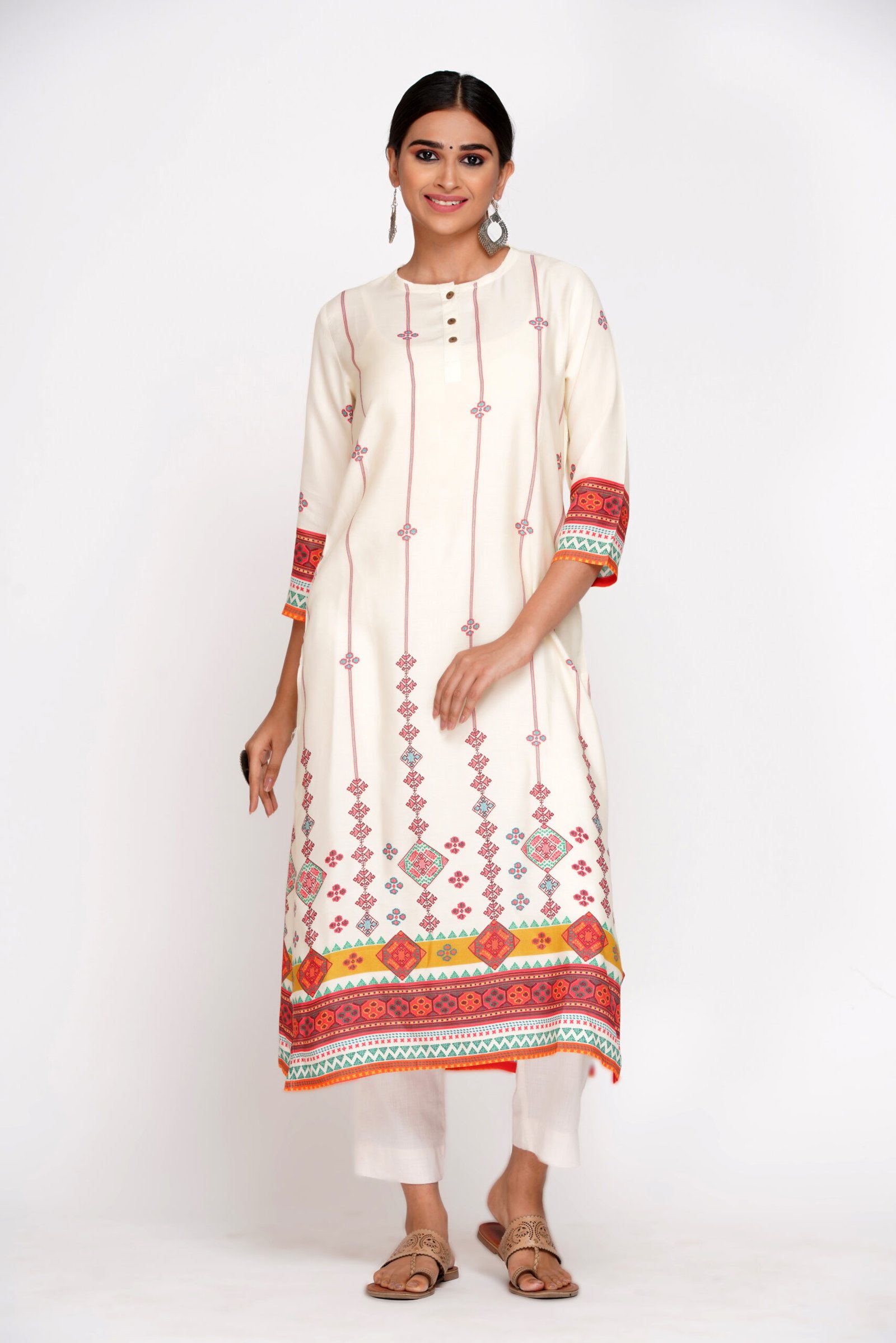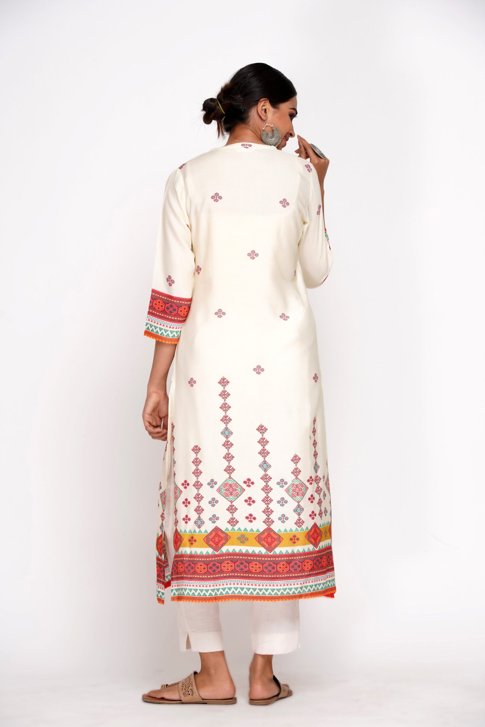Sleeves: 3/4th Sleeves with Printed Border Cuffs