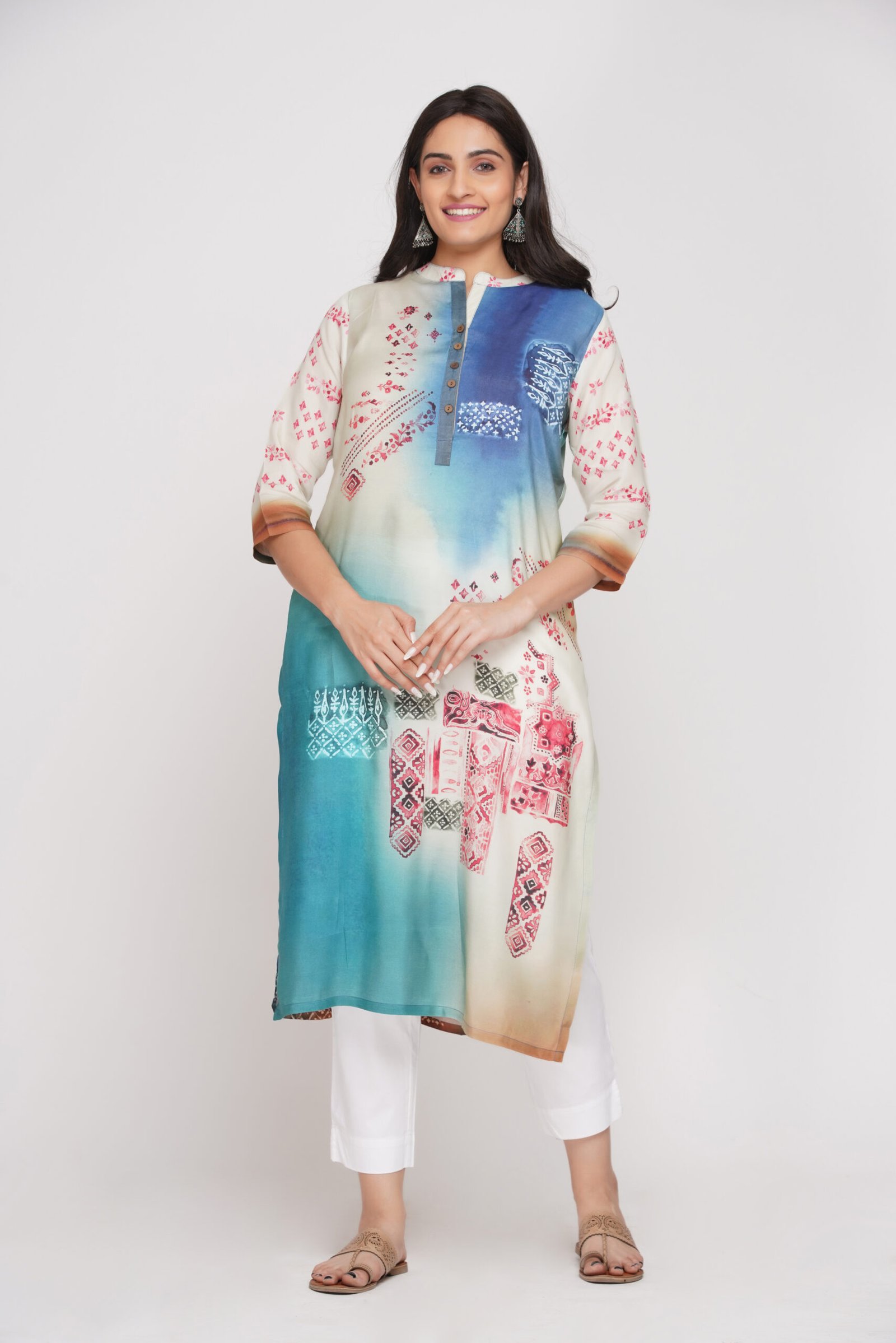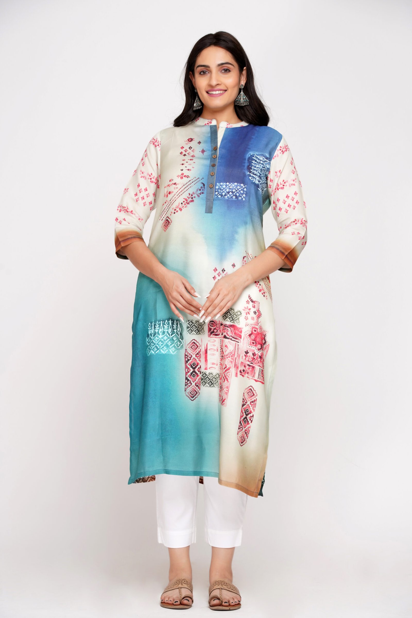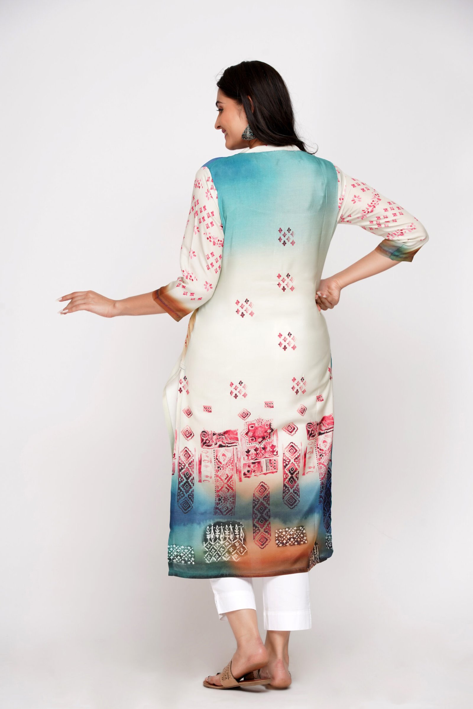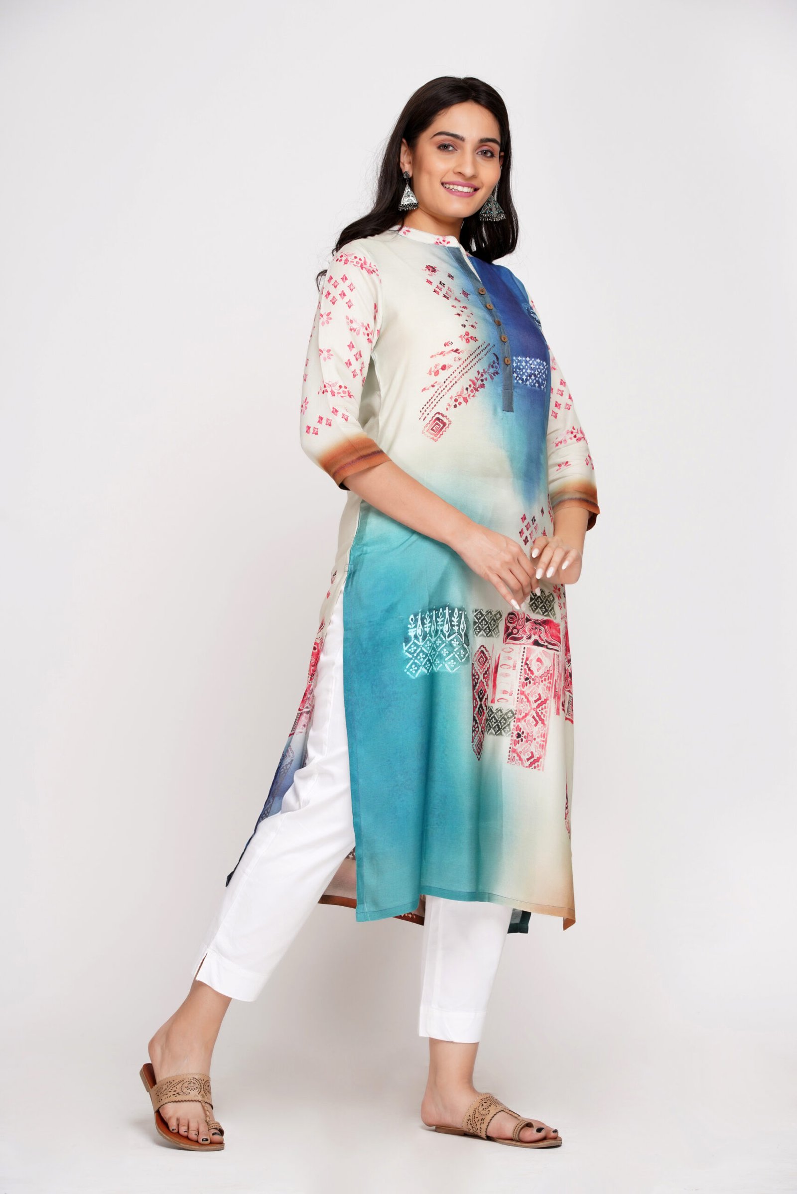 Pattern: Digital Ombre with Abstract GeometricStyle Type: Straight Kurta with Side Slits