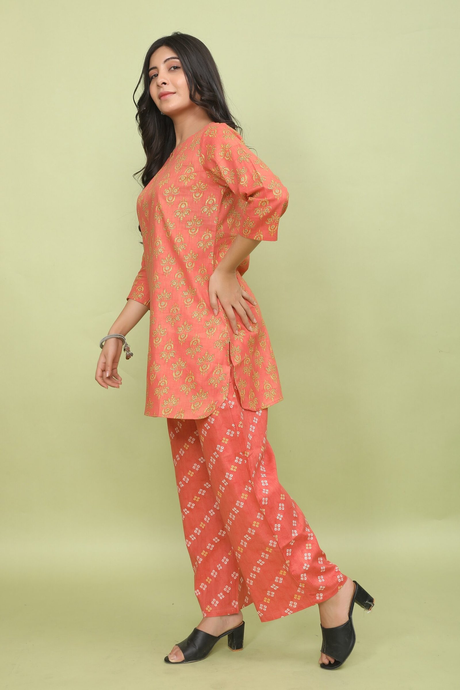 Pattern: Mixed Print – Floral on Pants Bandhani Print on Pants