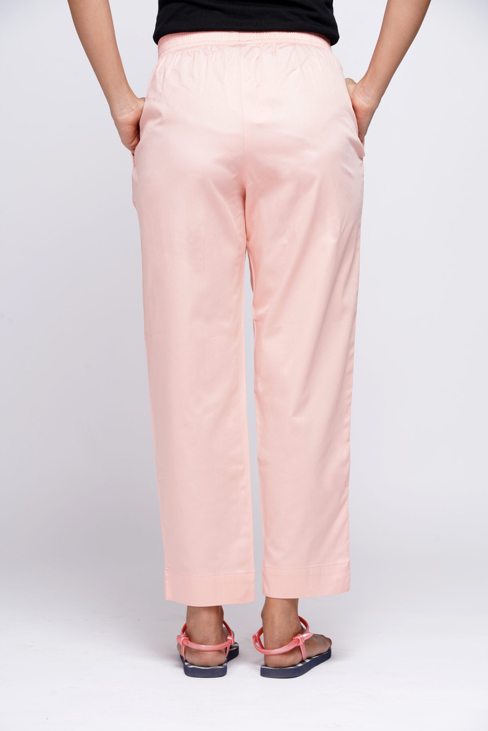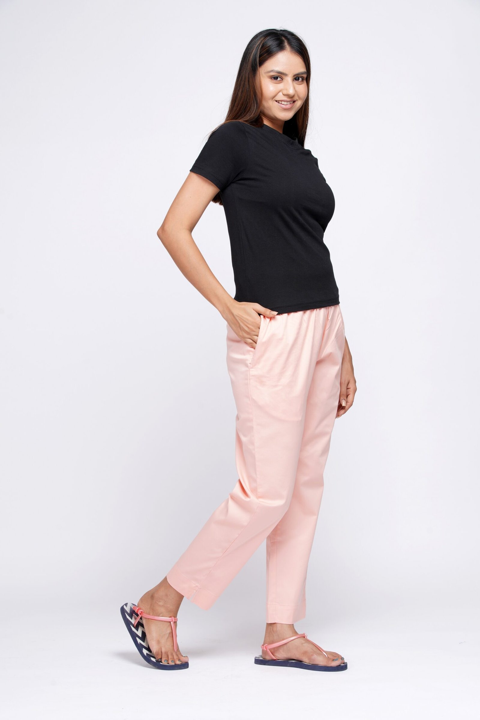 Peach Pre Washed Cotton Stretch Pant Full Elastic