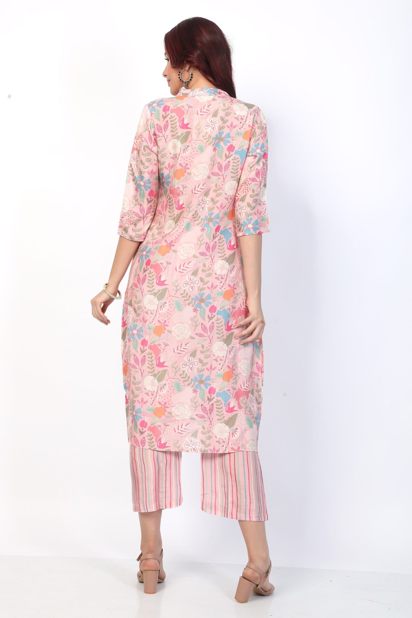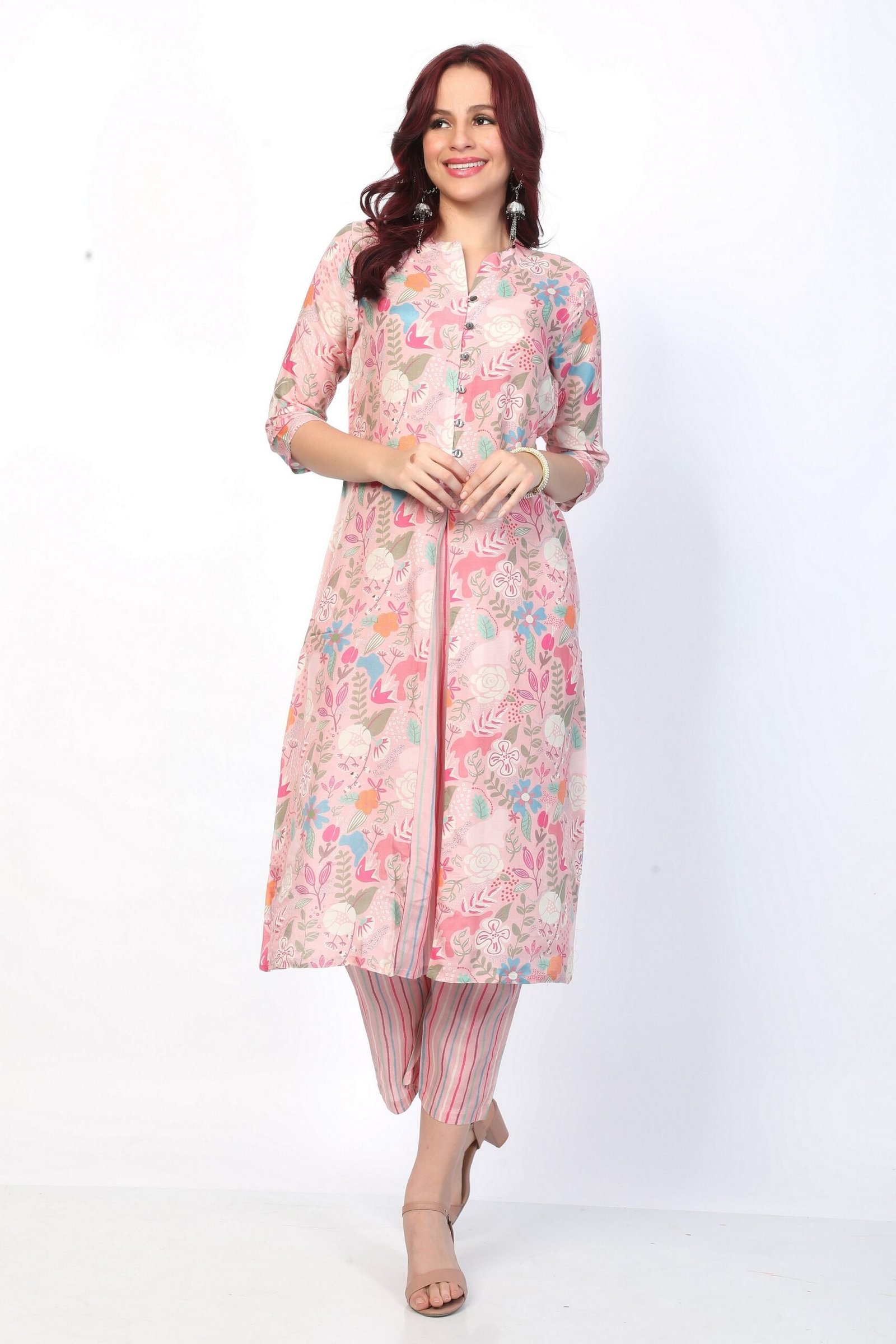 Pattern: Floral Print (Kurta) & Vertical Stripes (Pants)