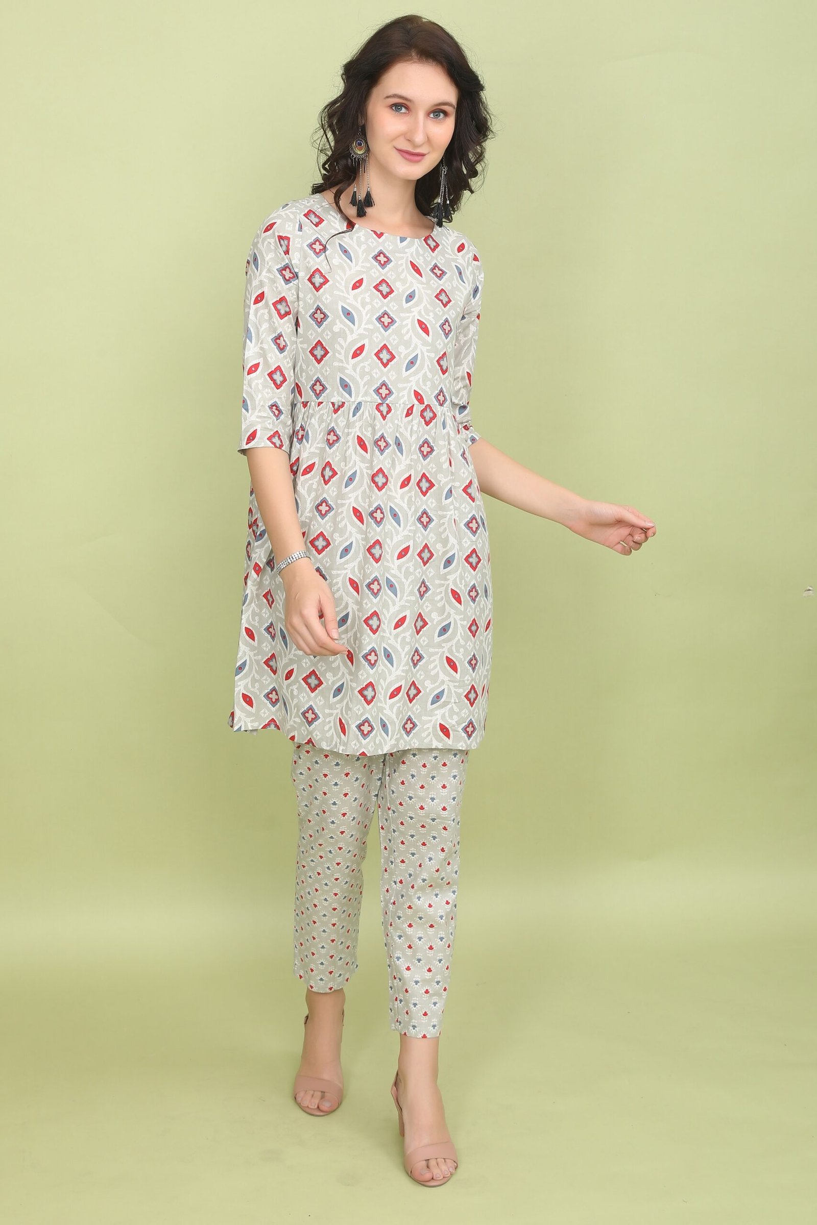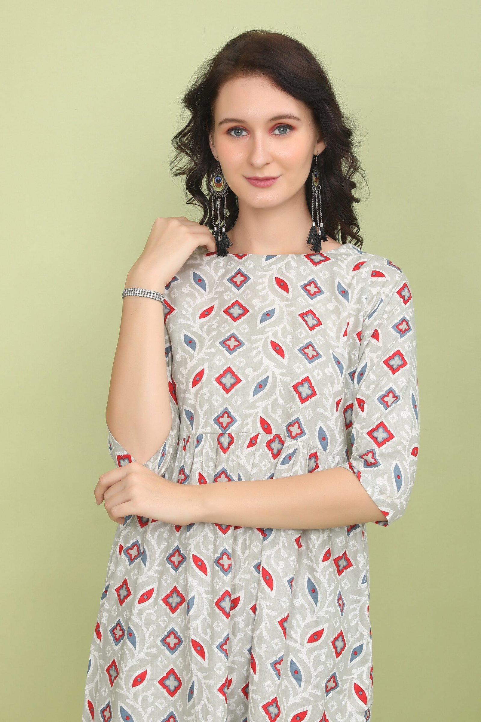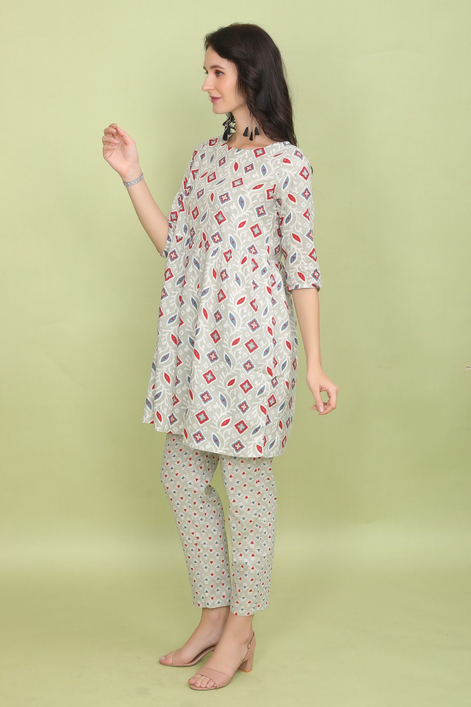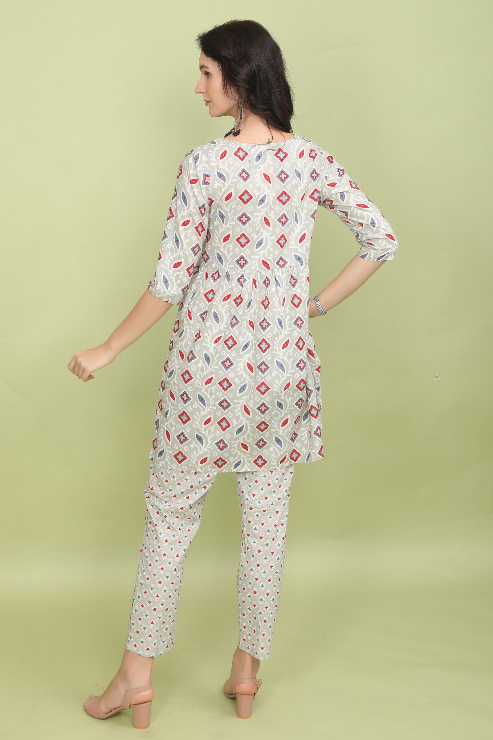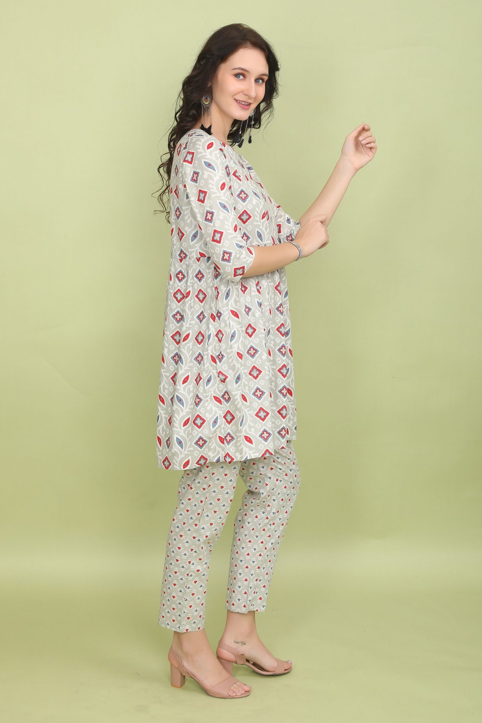 Top Pattern: Mixed Geometric & Stylized Leaf Print