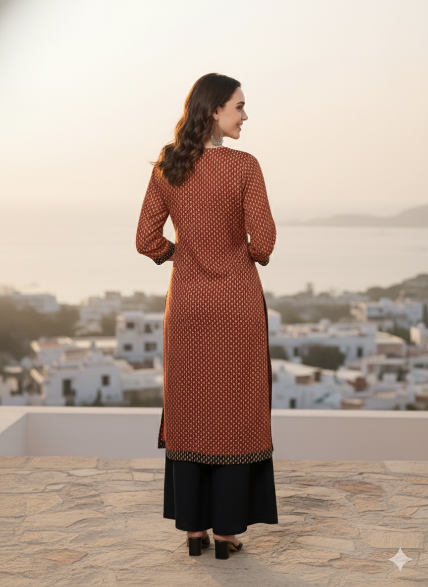 Sleeves: 3/4th Sleeves with Printed Black Cuffs